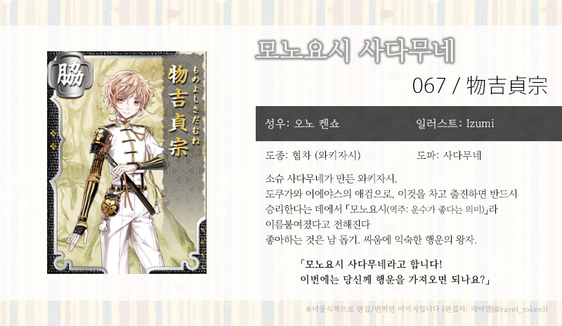 | [소개문 번역] 061-062. 아이젠 쿠니토시 (愛染国俊) (0) | 2019.06.06 |