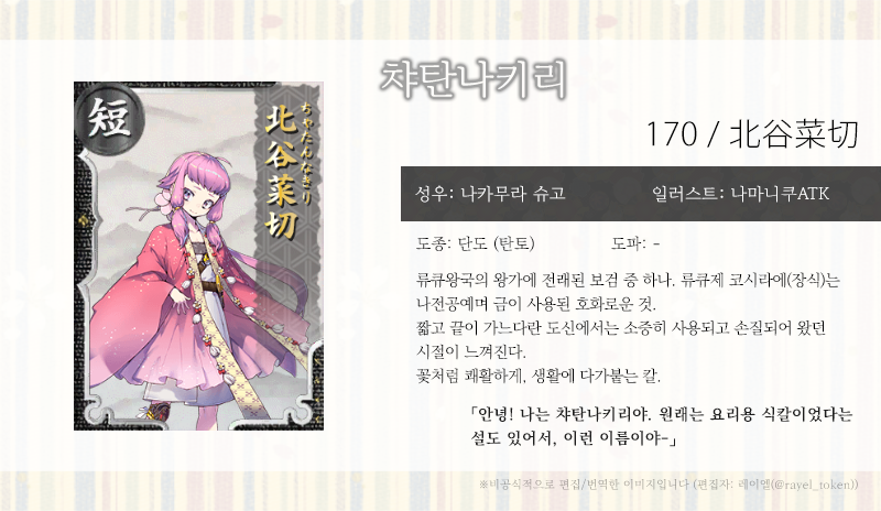 | [소개문 번역] 172. 쿠와나 고우 (桑名江) (0) | 2019.09.25 |