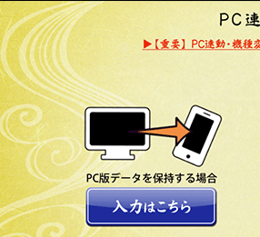 스마트폰판을 다운로드하기 전에, 우선 'PC연동/기종변경은 이쪽(PC連動・機種変更はこちら)' 배너에서, 연동ID와 패스워드를 발행해 주십시오.