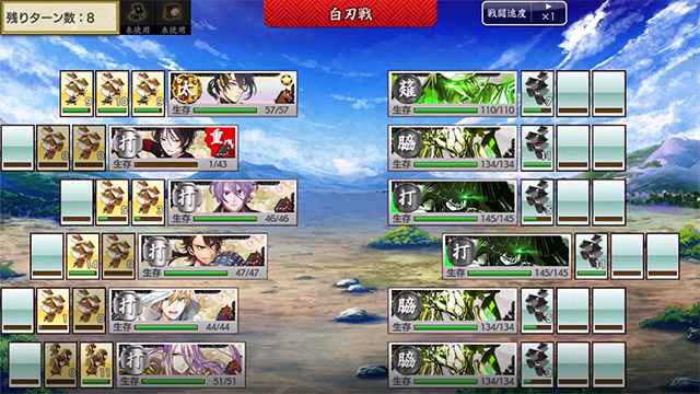 ※ 생존치가 남아있어도, 일정까지 밀려나간 도검남사는 「전선붕괴」가 됩니다.