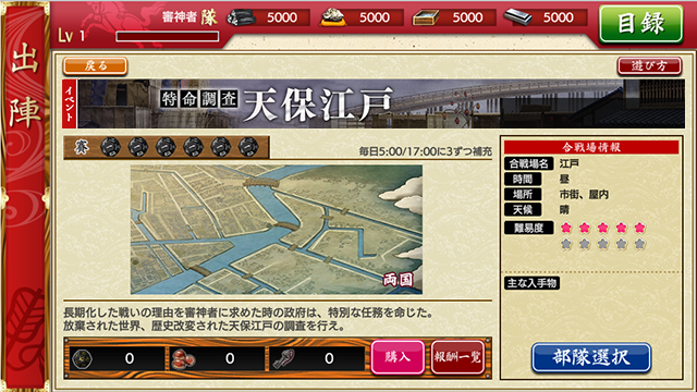 <특명조사 텐포 에도>에 부대가 출진해 있는 상태를 유지한 채 혼마루에 돌아갑니다.