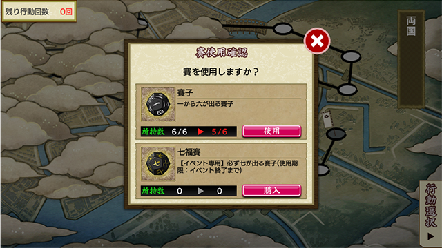 ※칠복주사위의 소지수가 0개인 경우, <특명조사 텐포 에도> 맵 위에서도 구입할 수 있습니다.